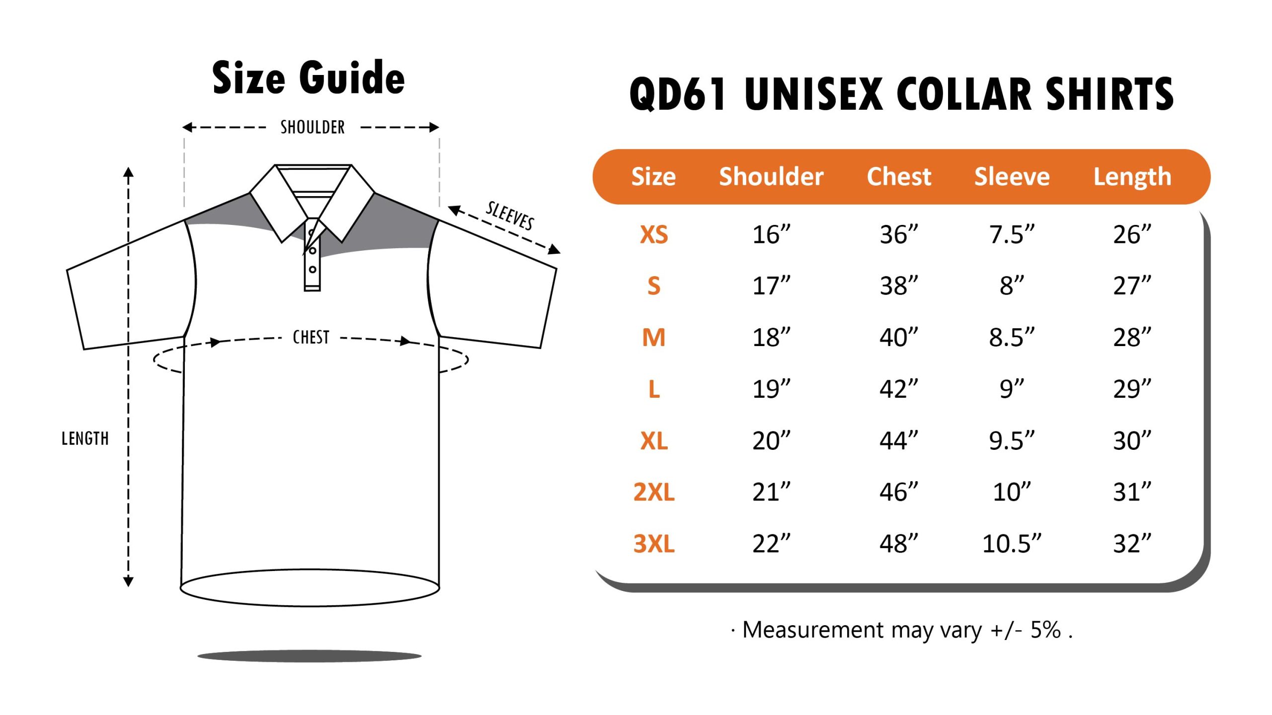 Size | XS, S, M, L, XL, 2XL, 3XL |