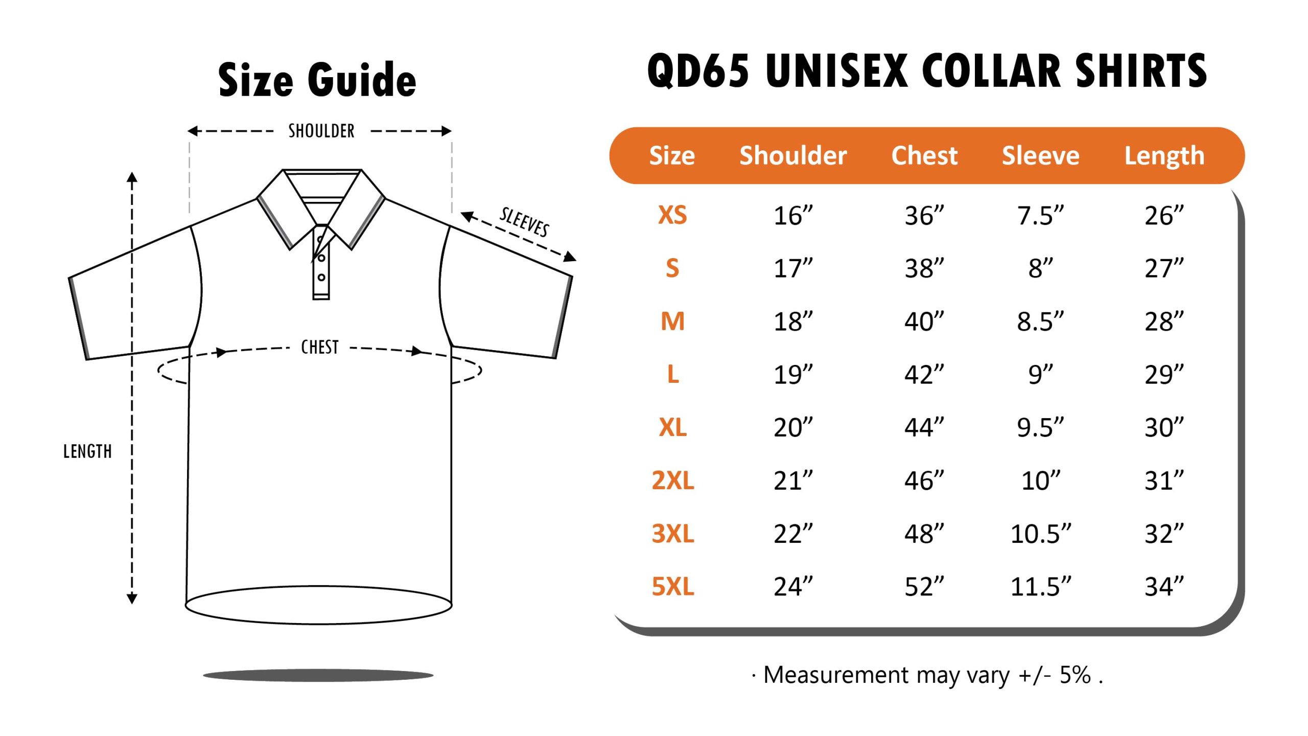 | Size | XS, S, M, L, XL, 2XL, 3XL, 5XL |